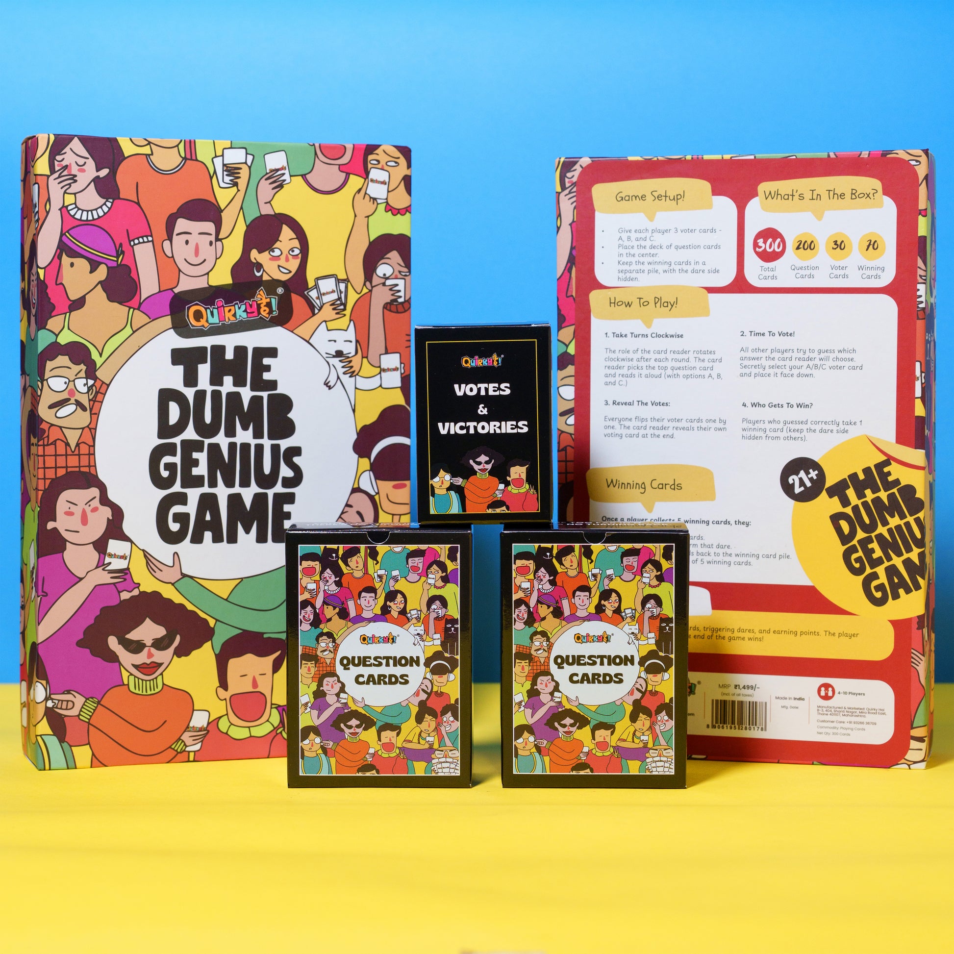Get ready for the party showdown of brains, bluffs, and bad ideas. The Dumb Genius Game is a laugh-out-loud mix of clever questions, savage votes, and ridiculous dares. Inside, you’ll find 300 cards- Includes 200 question cards, 70 winning cards, and 30 voting cards.
