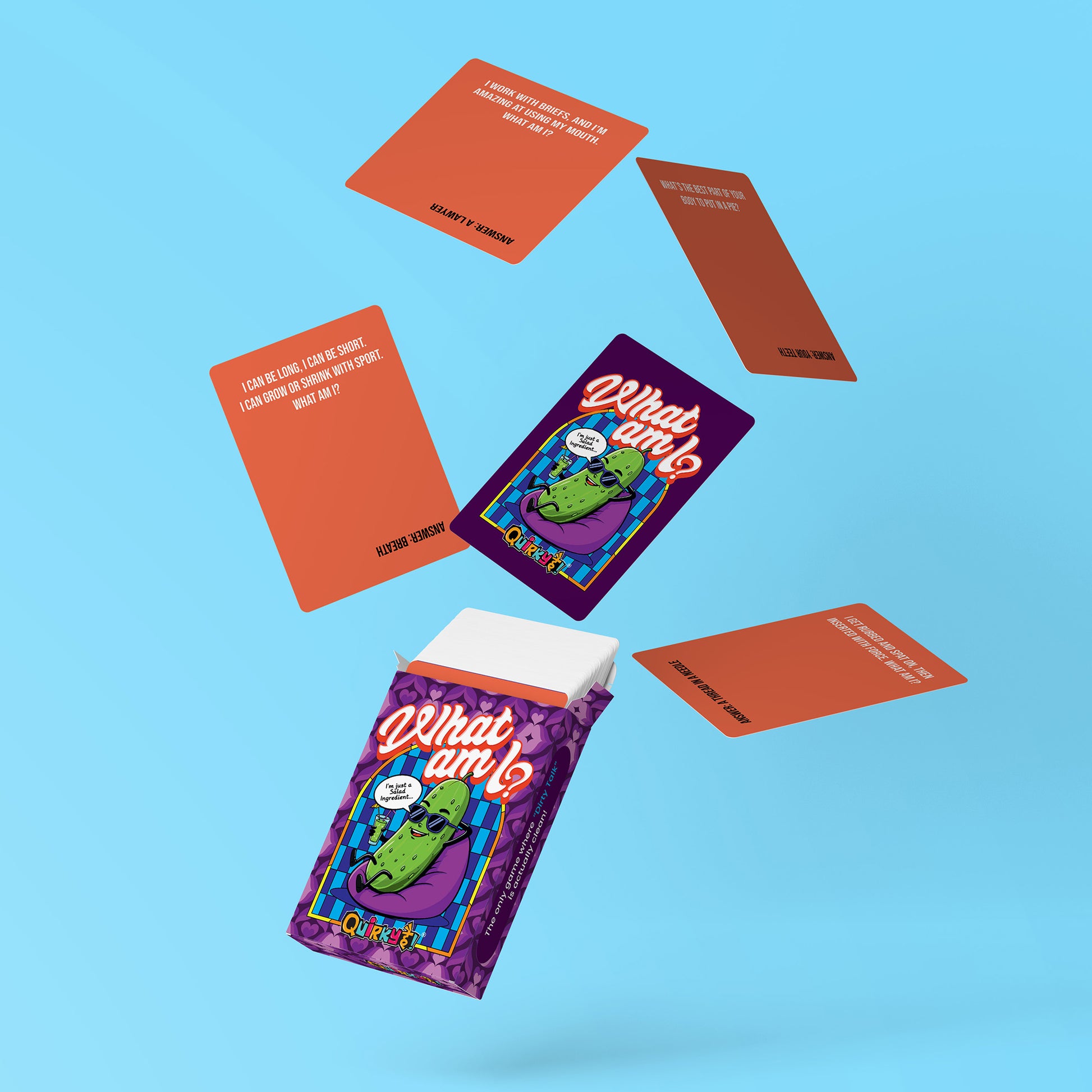 What Am I? is the hilarious 18+ guessing game that sounds naughty but isn’t! Each card comes with cheeky, suggestive clues that will have everyone’s minds racing, only to realize the real answer is completely innocent.